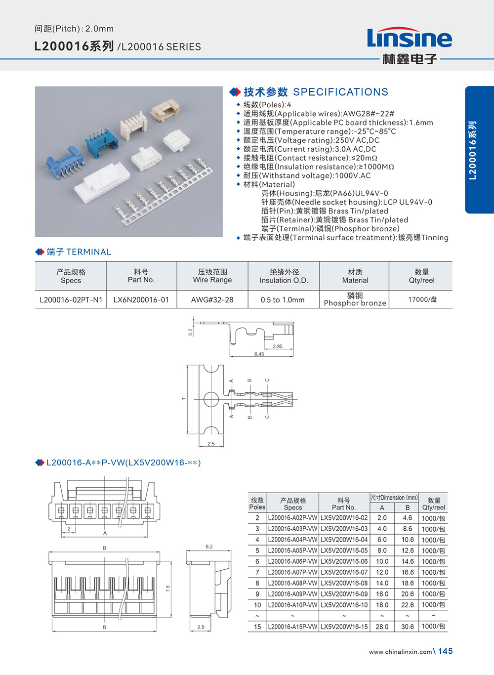 温州市林鑫电子有限公司创办于1998年。是从事接线端子和连接器开发和销售的专业服务商,致力于为客户提供各种连接器和接线端子的解决方案及相关产品。本公司主要生产家用电器、计算机、汽车等配套的连接器及端子,共计2000种多品种。公司已经通过ISO9001:2008质量体系认证,具备完善的质量检验手段,优异的品质、优惠的价格、优质的服务是我们对客户的承诺。